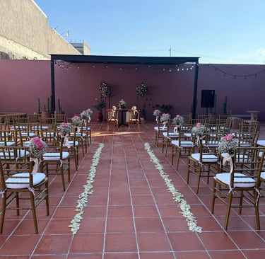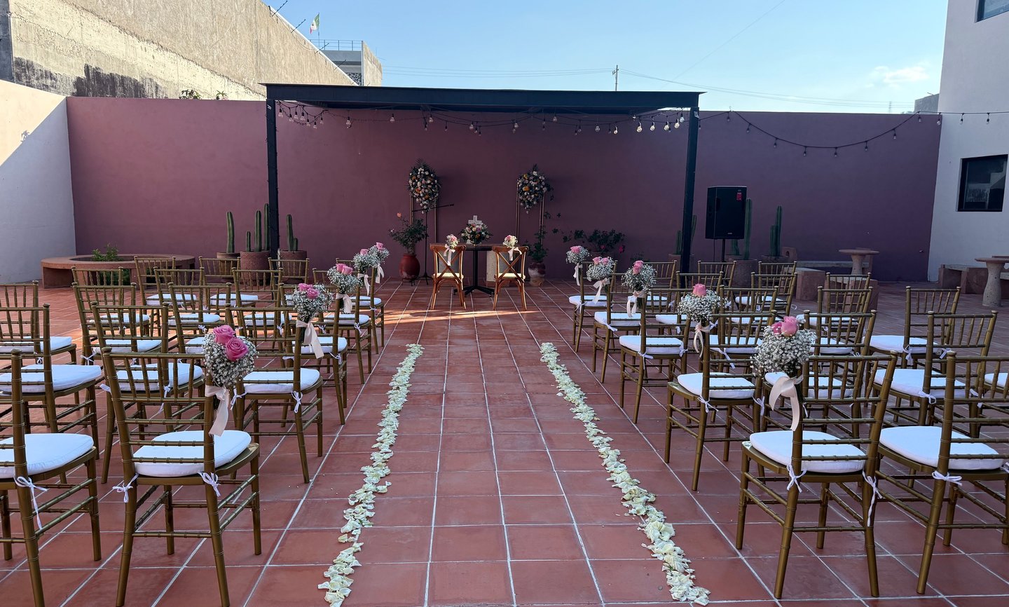 Es un espacio encantador que captura la esencia de México en un ambiente al aire libre. Con 407 m² y una capacidad para 250 personas cómodamente sentadas, es ideal para bodas religiosas bajo el cielo, celebraciones de cumpleaños íntimas y alegres, afters llenos de energía, y graduaciones pequeñas con un toque especial.